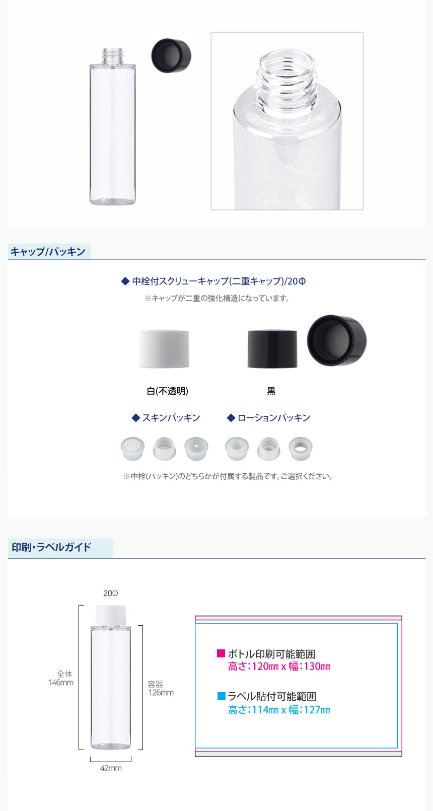 容量:120ml / 口径 : 20φ / 高さ:146mm / 直径 : 42mm