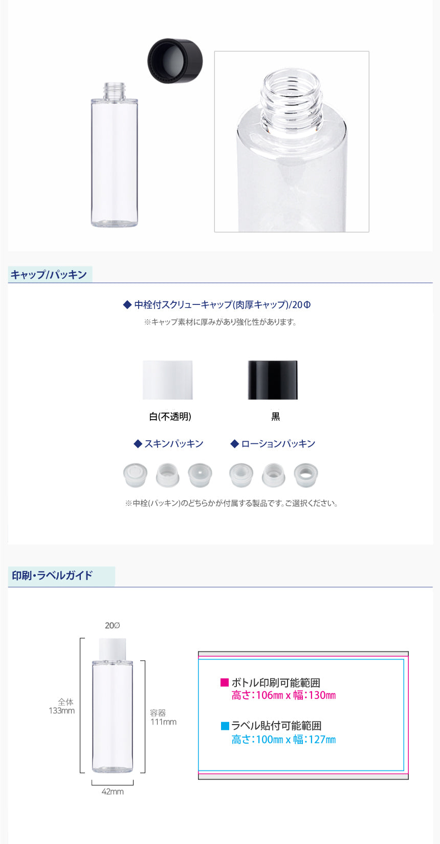 容量:100ml / 口径 : 20φ / 高さ:133mm / 直径 : 42mm