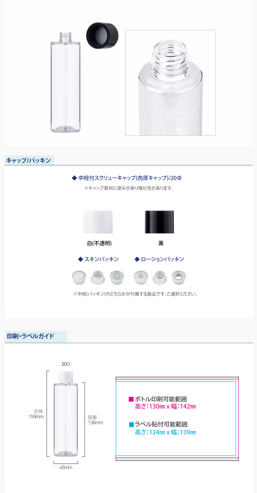 容量:150ml / 口径 : 20φ / 高さ:159mm / 直径 : 45mm