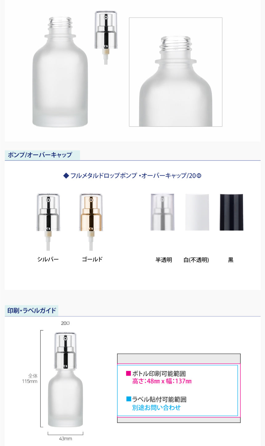 容量:50ml / 口径 : 20φ / 高さ:116mm / 直径 : 43mm