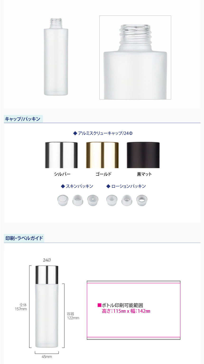 容量:120ml / 口径 : 24φ / 高さ:156mm / 直径 : 45mm