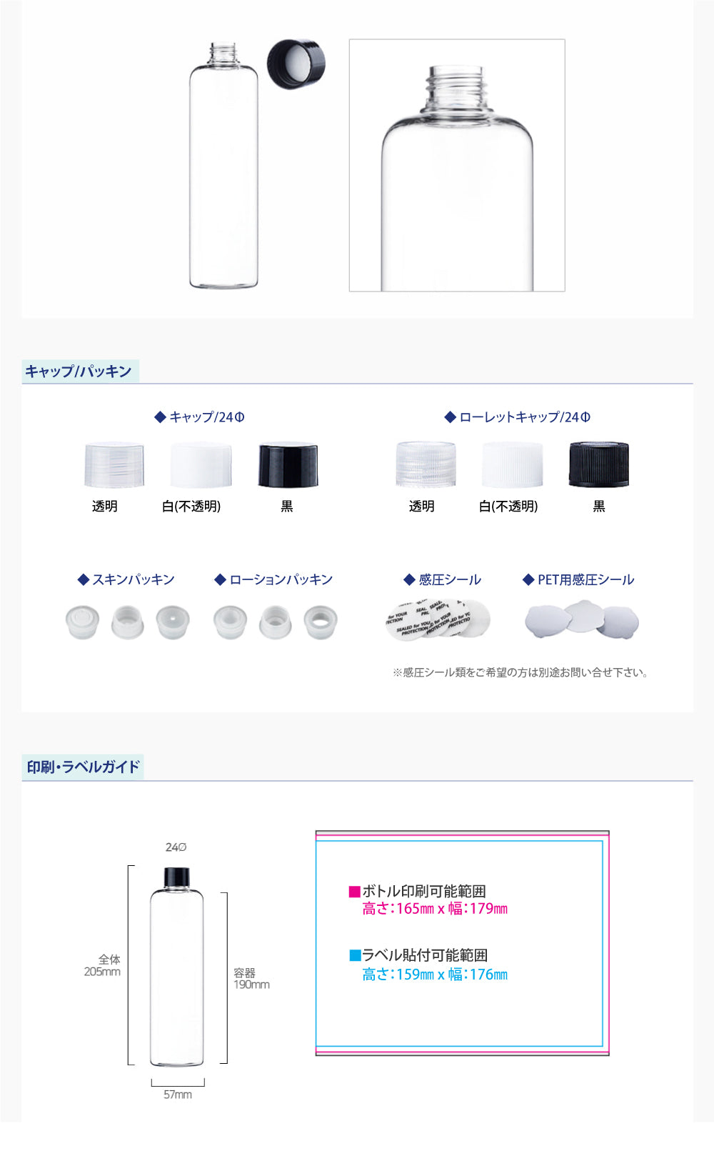 容量:410ml / 口径 : 24φ / 高さ:205mm / 直径 : 57mm