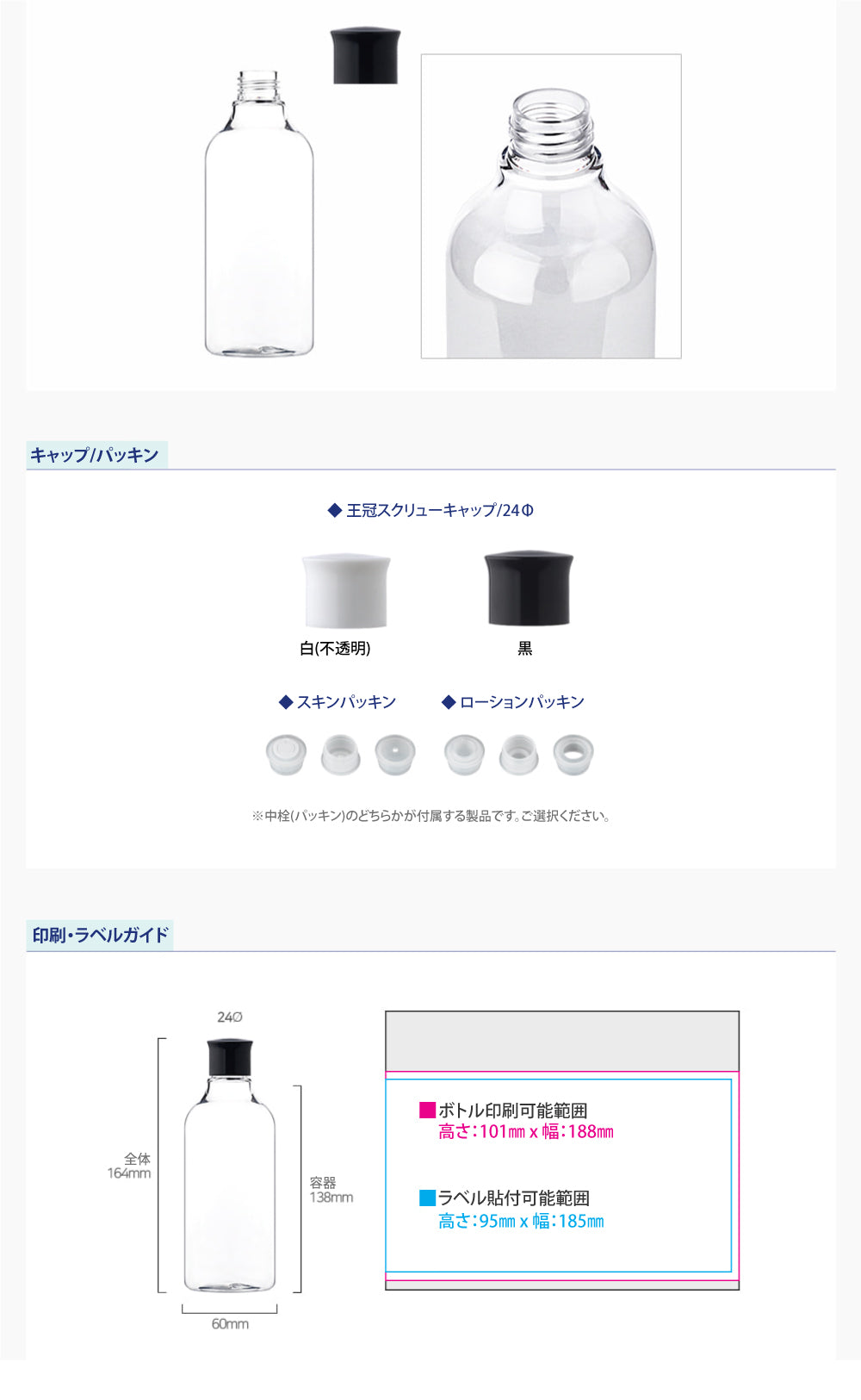 L) 王冠スクリューキャップボトル(中栓付) CW300ml_PET