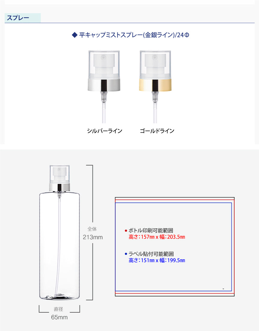 L) 平ミストスプレー(金銀ラインキャップ) CL500ml_PET