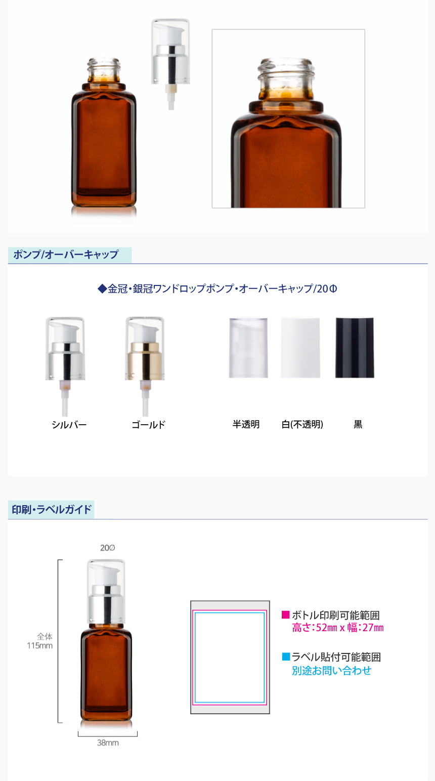 L) 金冠・銀冠ガラスドロップポンプ(茶色・角型) 50ml
