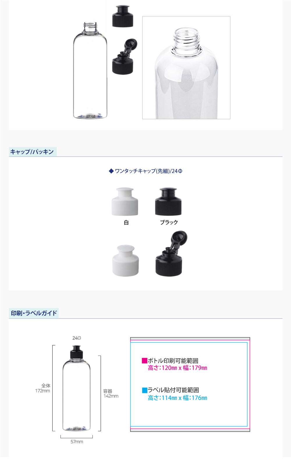 容量:300ml / 口径 : 24φ / 高さ:172mm / 直径 : 57mm