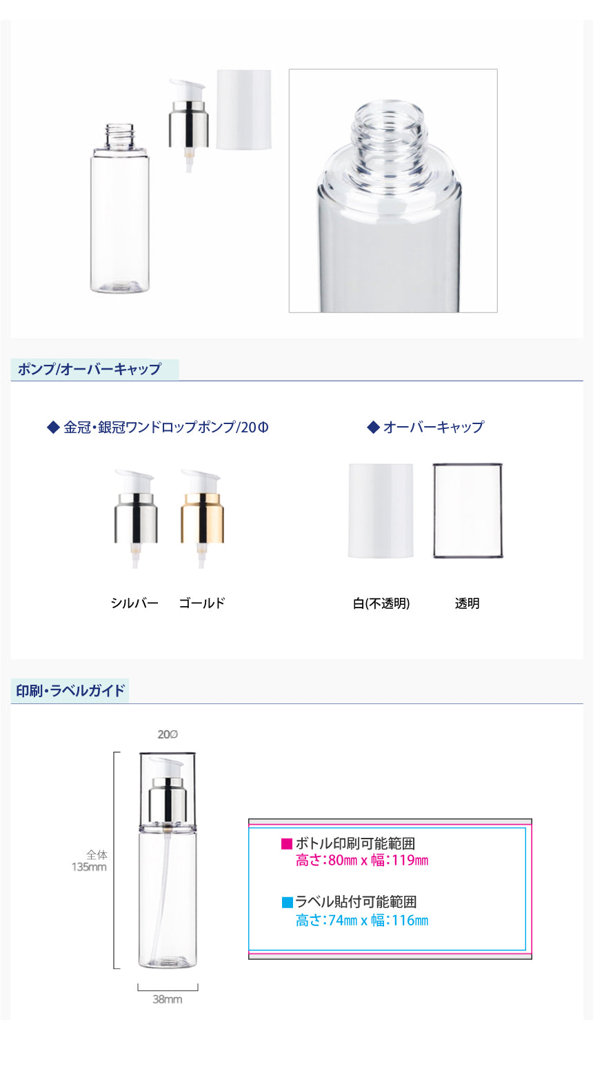 容量:80ml / 口径 : 20φ / 高さ:135mm / 直径 : 38mm