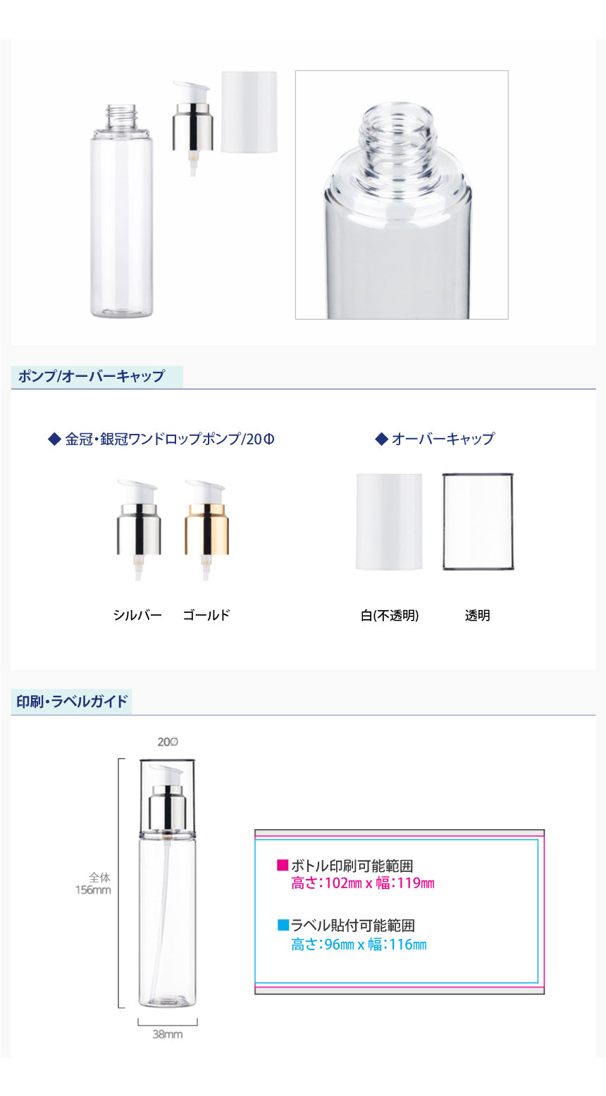容量:100ml / 口径 : 20φ / 高さ:156mm / 直径 : 38mm