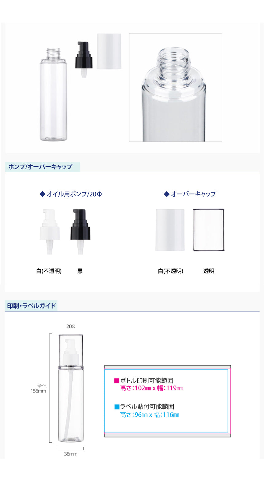 容量:100ml / 口径 : 20φ / 高さ:156mm / 直径 : 38mm