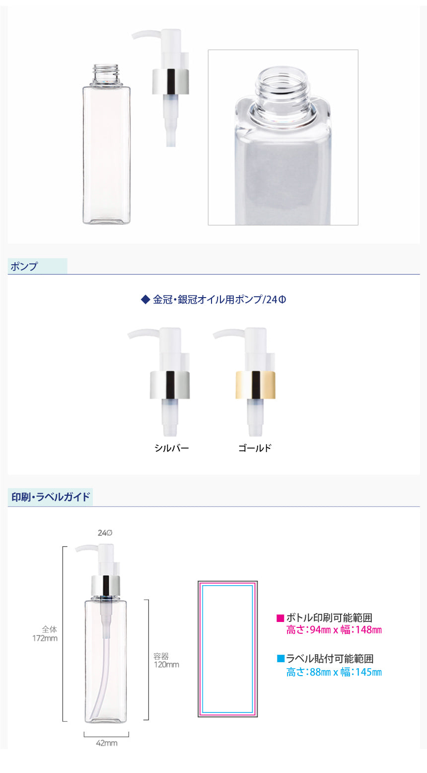 L) 金冠・銀冠オイル用ドロップポンプ(角型) S150ml_PET