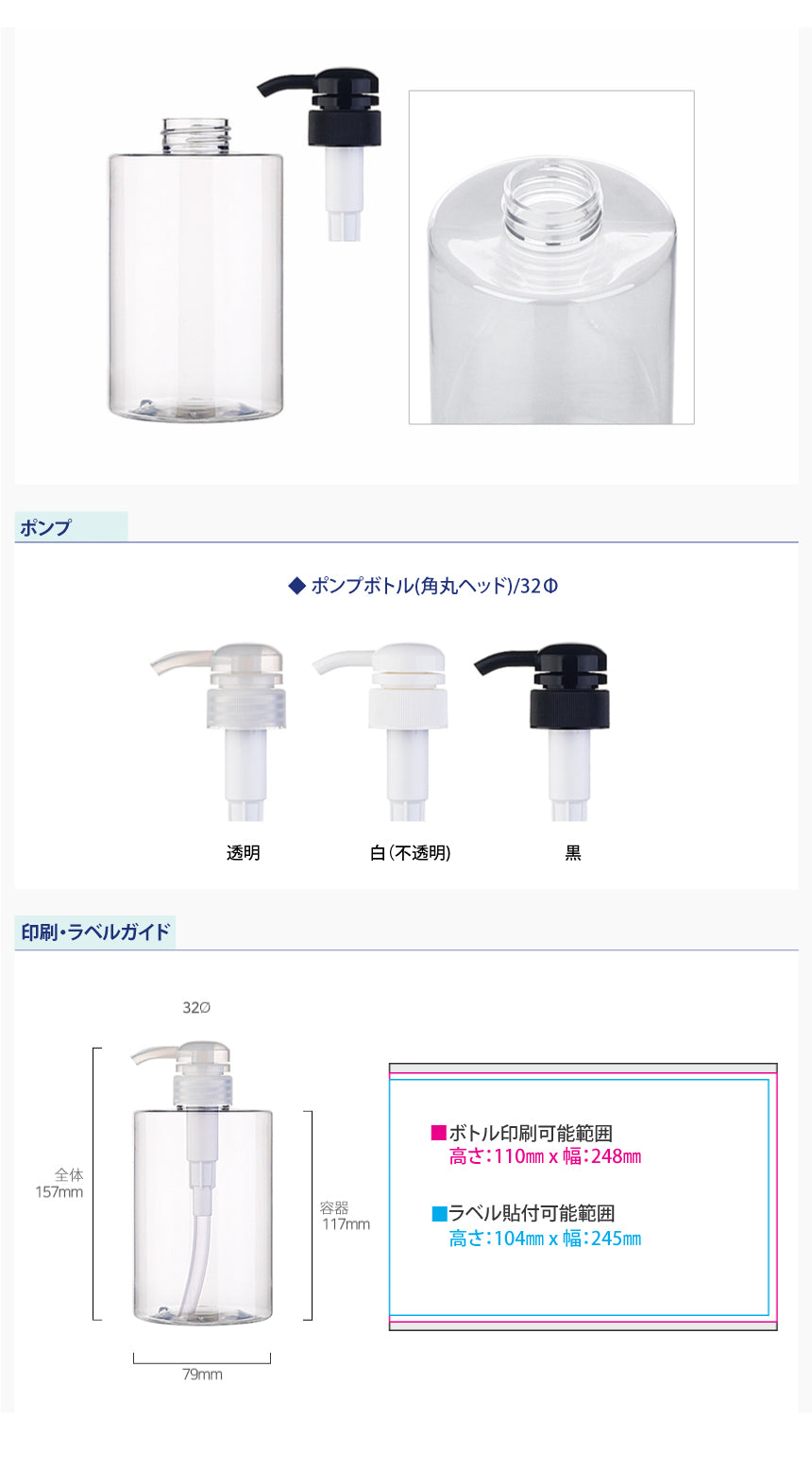 L) ポンプボトル(角丸ヘッド) CS500ml_PET