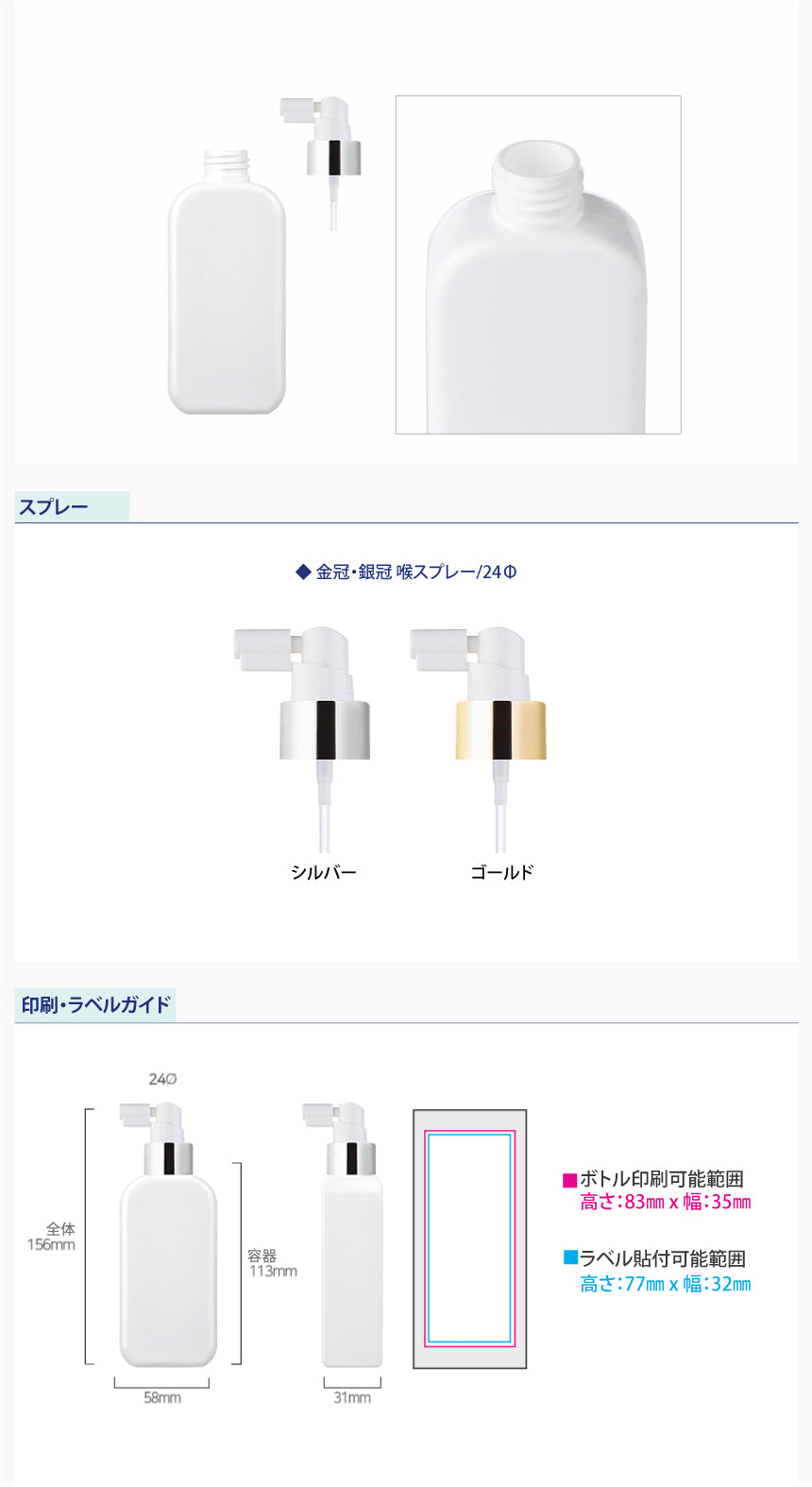 L) 金冠・銀冠 喉スプレー(スクエア) SR150ml_PET