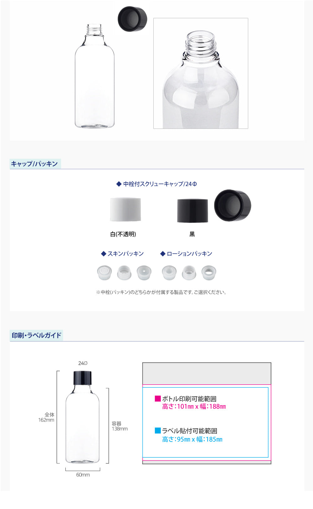 容量:300ml / 口径 : 24φ / 高さ:162mm / 直径 : 60mm
