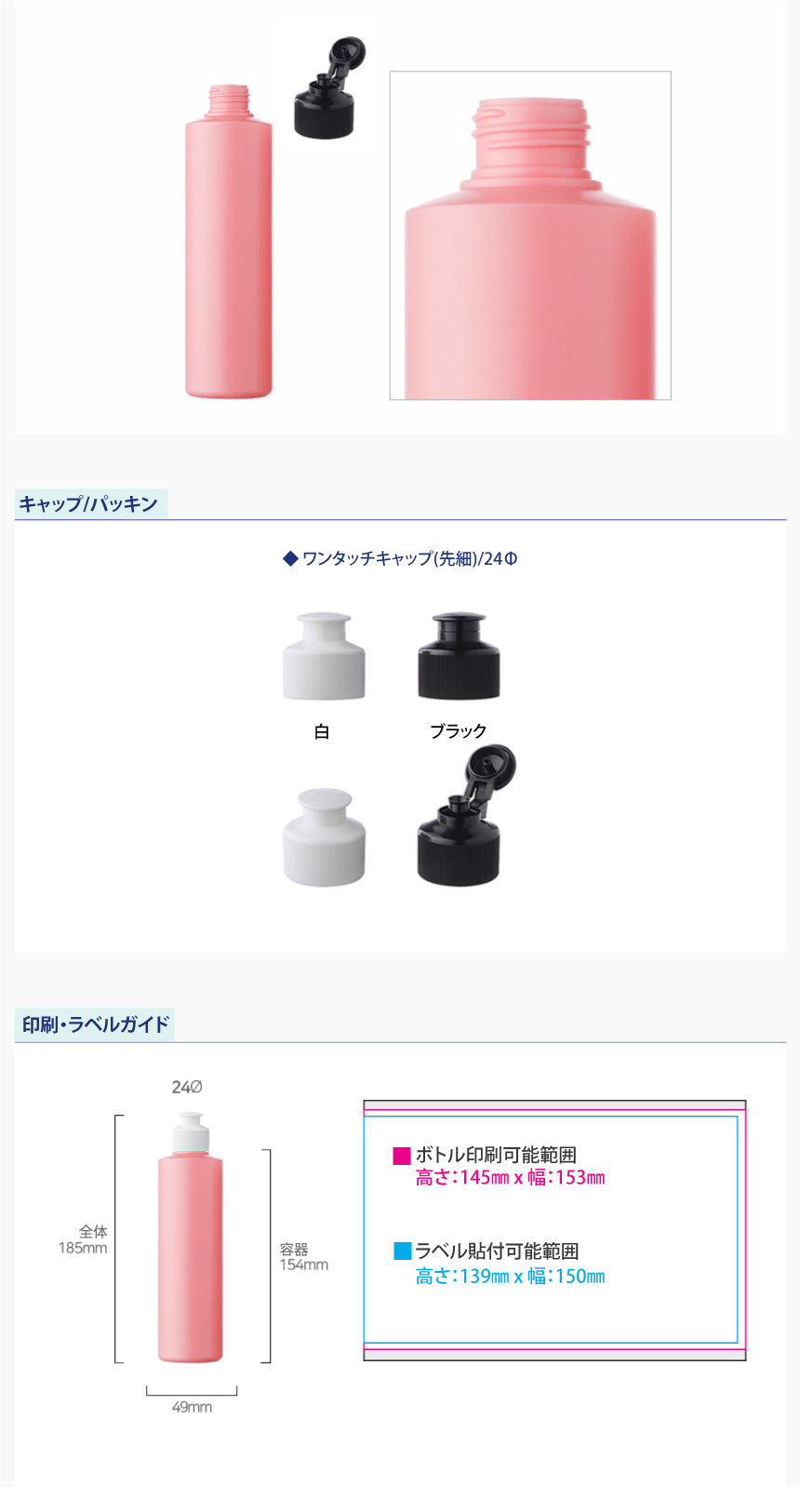 L) ワンタッチキャップボトル(先細) C250ml_PE