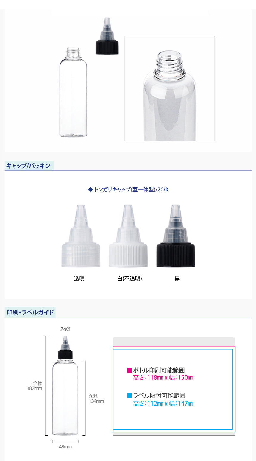 L) トンガリキャップ(蓋一体型-T) CRL200ml_PET
