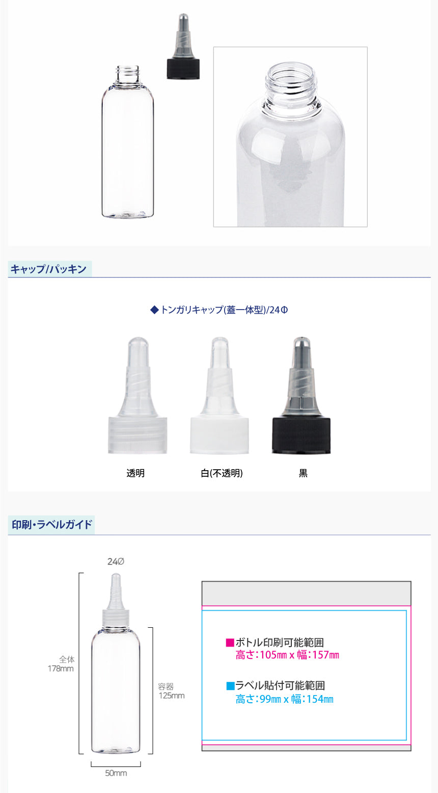 L) トンガリキャップ(蓋一体型) CRN200ml_PET