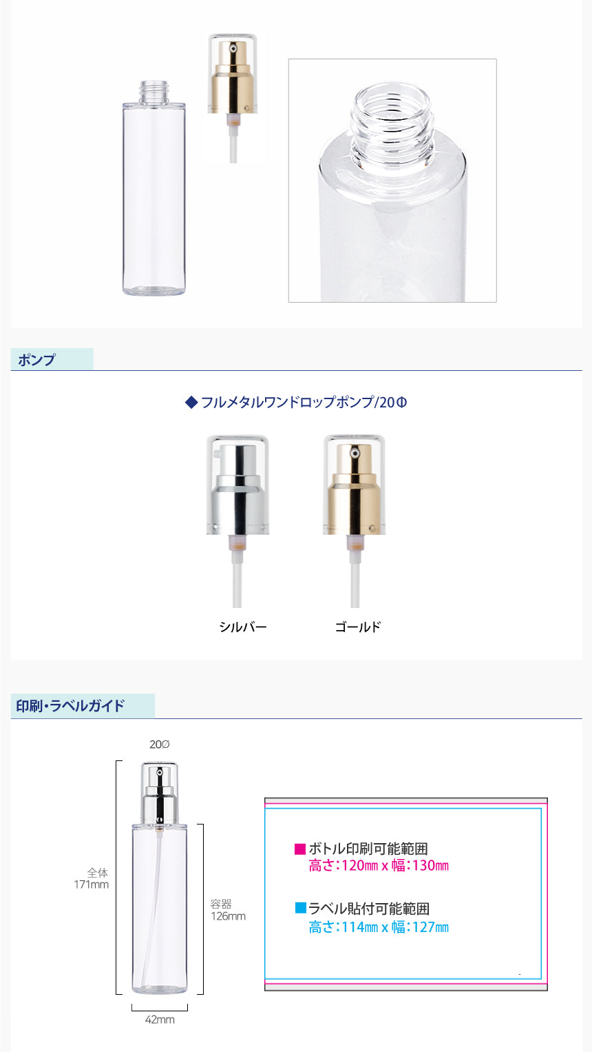 容量:120ml / 口径 : 20φ / 高さ:171mm / 直径 : 42mm
