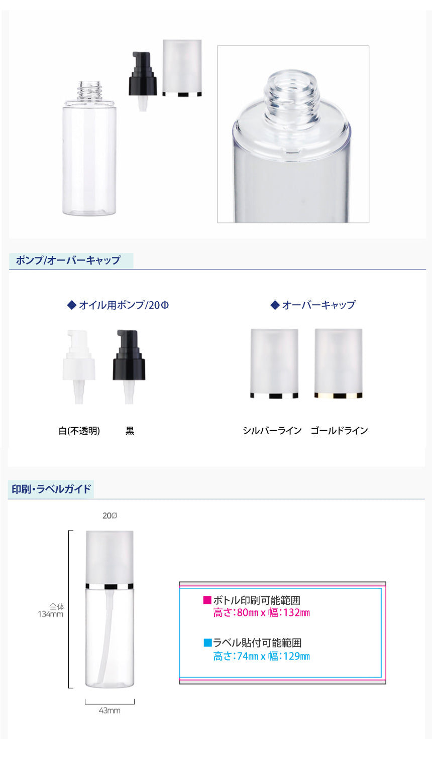 容量:100ml / 口径 : 20φ / 高さ:134mm / 直径 : 43mm