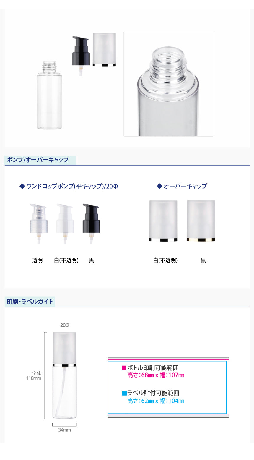 容量:50ml / 口径 : 20φ / 高さ:118mm / 直径 : 34mm