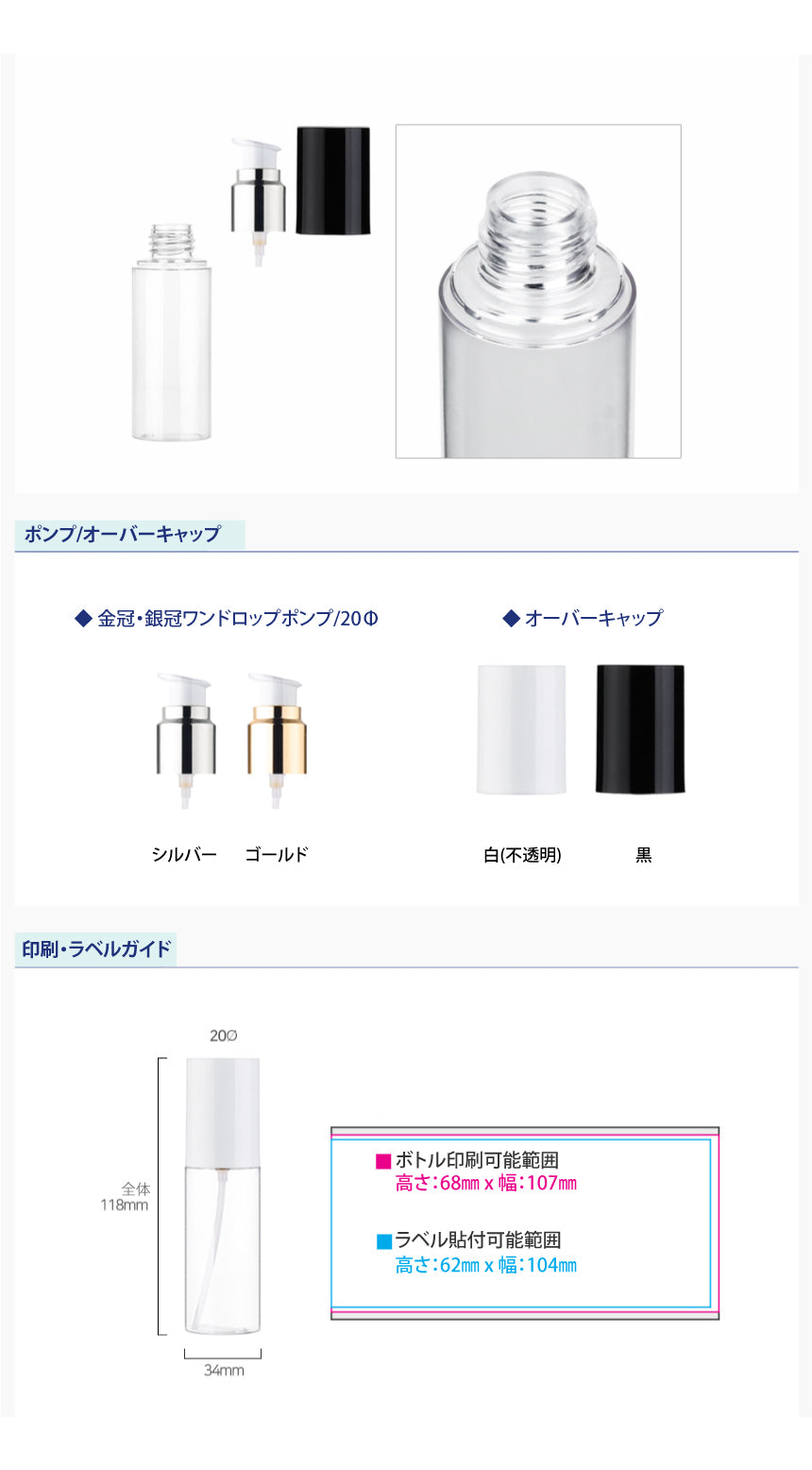 容量:50ml / 口径 : 20φ / 高さ:118mm / 直径 : 34mm