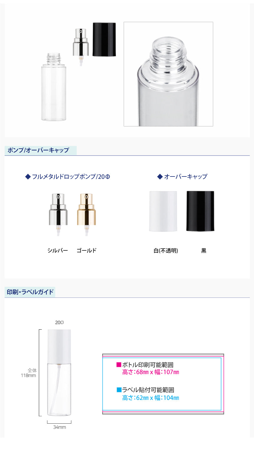 容量:50ml / 口径 : 20φ / 高さ:118mm / 直径 : 34mm